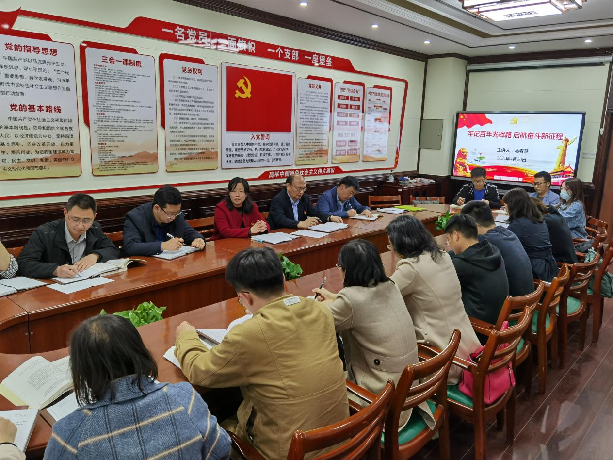 为进一步贯彻落实公司《党史学习教育实施方案》要求,2021年4月20日中午,太阳集团tyc539党总支书记马春燕在E316党员活动室为全体教师开展党史学习教育专题党课,东校区的教师通过网络视频形式参加学习会议。