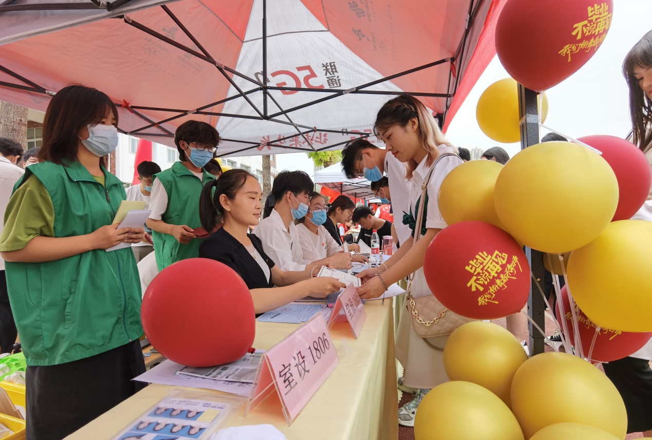 为了迎接2021届毕业生返校并为其提供优质难忘的服务,在太阳集团tyc539党总支书记马春燕的安排部署下,团总支书记刘亚娟,学工办主任刘高喜带领18级辅导员和志愿者们一大早便开展忙碌的准备工作,以确保毕业生顺利办理毕业手续。
