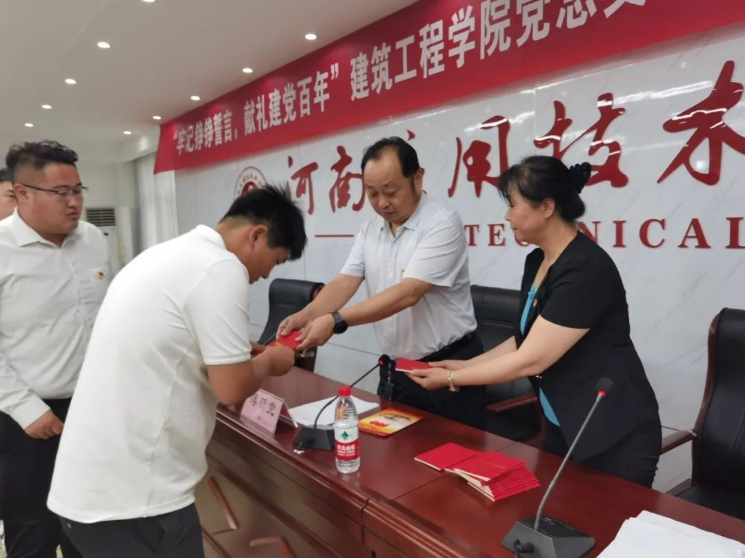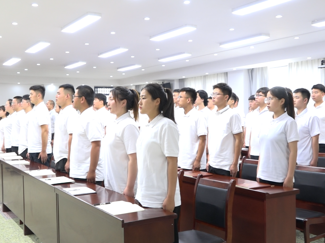 会议进行第二项,公司党委委员薄新党带领老党员们为新党员佩戴党员徽章,并为新党员发放《中国共产党章程》。