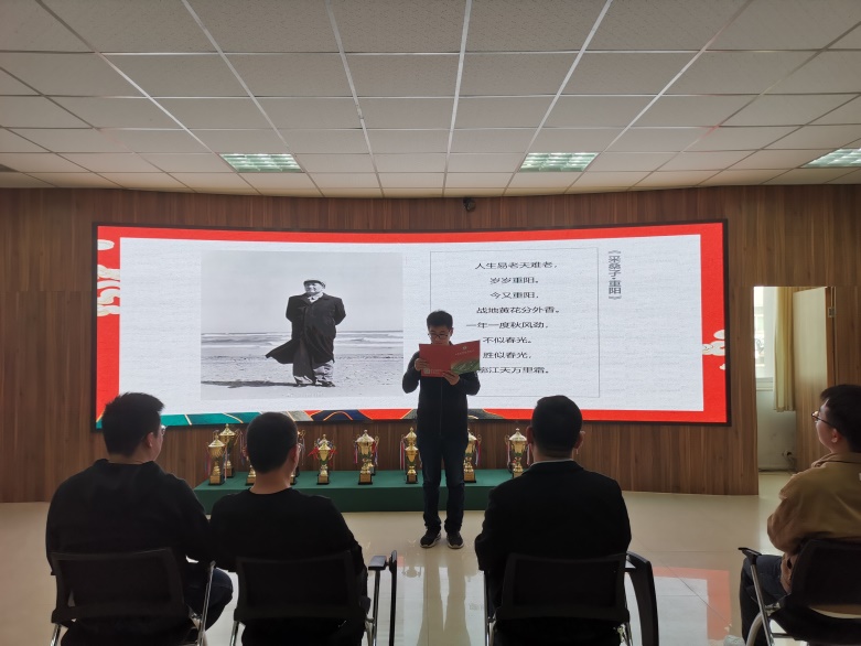活动开始,每位党员教师逐一上台朗诵一首毛主席的诗词,一起品味其中的深刻内涵,汲取其中的精神力量。本次朗诵活动将毛泽东笔下橘子洲头的万山红遍、井冈山上的旌旗在望、重阳里的战地黄花、万里长征的不怕远征难一一再现,在慷慨激昂的朗诵中重温红色经典诗词,传承毛泽东及老一辈无产阶级革命家自强不息的革命精神。