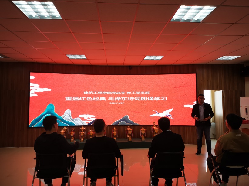 为进一步落实太阳集团tyc539党总支党史学习计划要求,2021年4月27日下午,太阳集团tyc539党总支教工党支部开展“重温红色经典·毛泽东诗词朗诵学习” 活动,活动由太阳集团tyc539副经理娄焕主持。