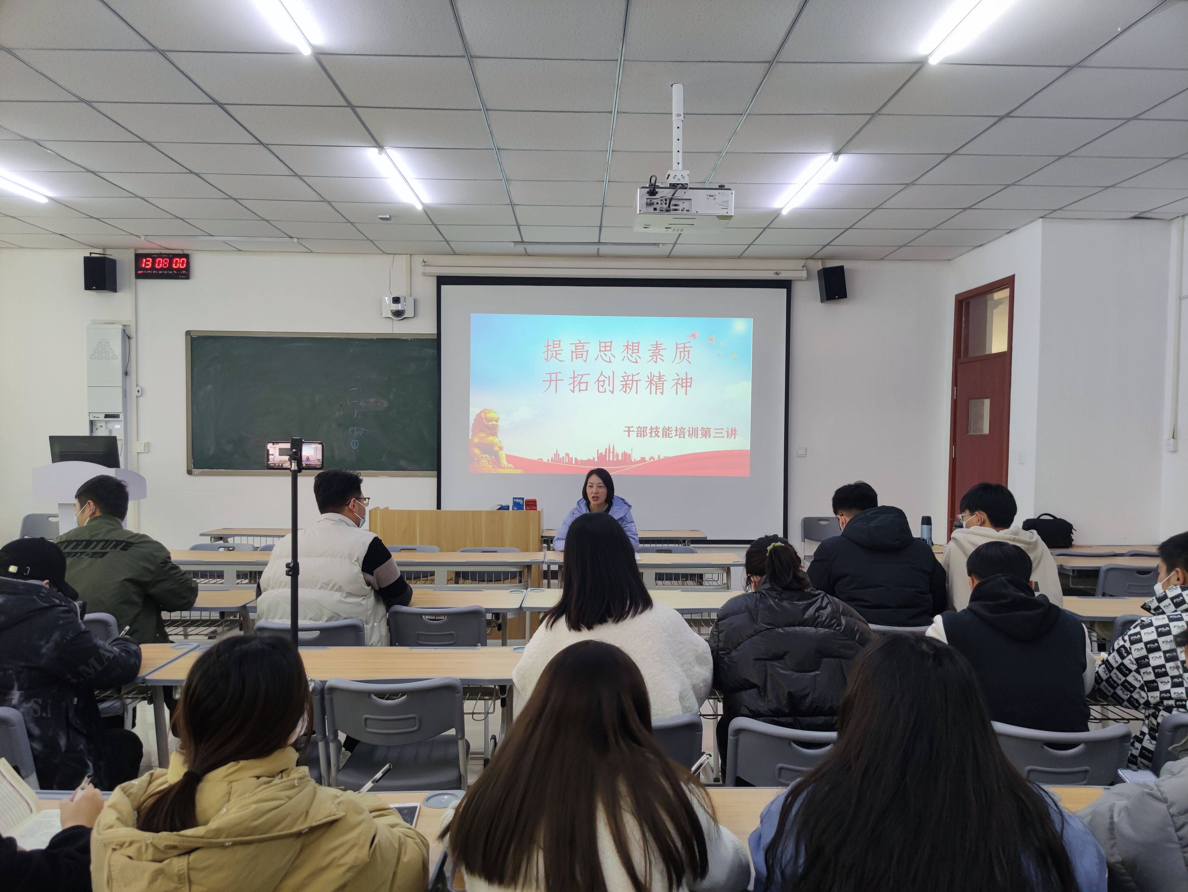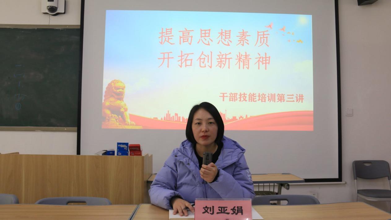 培训过程中,刘亚娟老师围绕精神文明检查要求,对员工干部提出以下几点要求:一是要求员工会成员从职能定位、运行机制等方面出发,明确本职工作,创新性开展工作;二是全体同学要遵守上课纪律,做到文明上课,杜绝迟到早退现象发生;三是按照无烟校园要求,做到全员禁烟;四是注意宿舍卫生及通风,同时做好个人日常防护,保护好自身的个人安全和财产安全。
