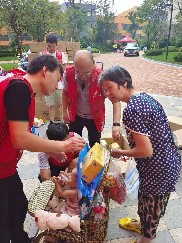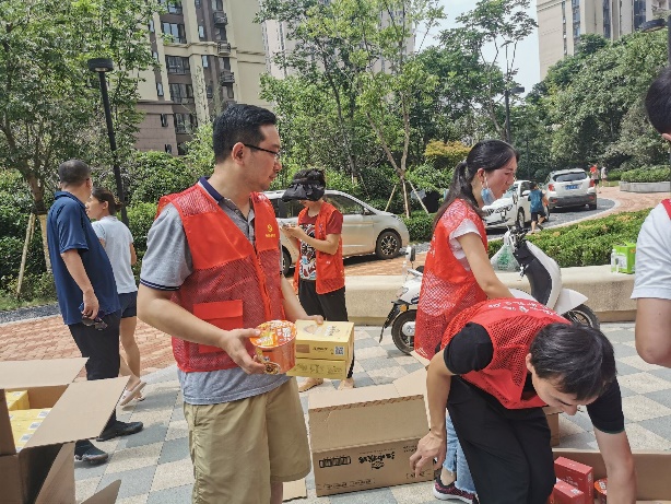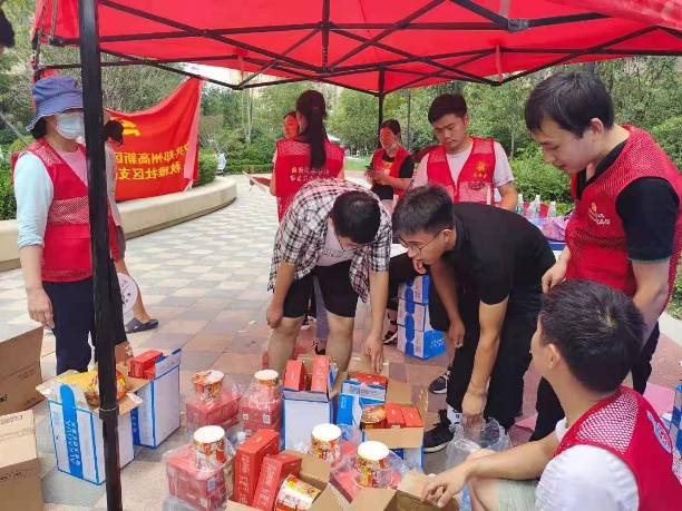 险情就是命令,防汛就是责任。做好防汛救灾工作是当前的一项重大政治任务。7月24日上午9时,当太阳集团tyc539党总支书记马春燕得知秋雅社区分发救灾物资缺人手的时候,她再次召集7名党员教师和5名员工党员走进社区支援。大家负责分装发放9、10、11、12四栋楼物资,遇到行动不便的老人或者带孩子的妇女时,大家帮忙运送上楼。