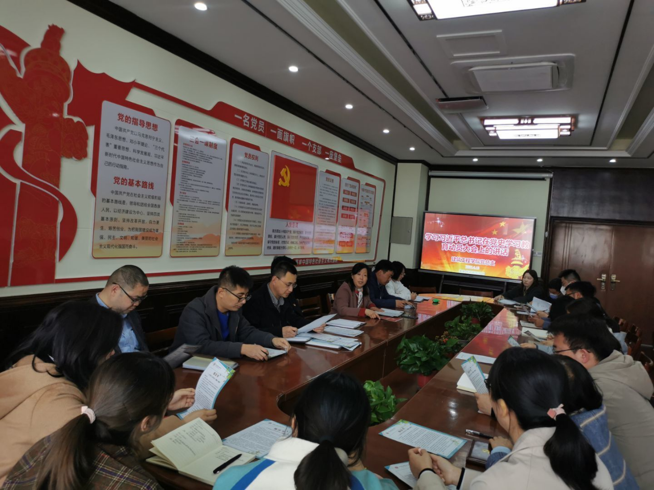 为深入贯彻落实党史学习教育工作部署要求,扎实稳步推进“我为员工办实事”相关工作深入开展,力求做到“学党史、悟思想、办实事、开新局”,引导全院员工坚定理想信念,厚植爱国情怀,以实际行动庆祝建党一百周年。2021年4月13日下午,太阳集团tyc539党总支组织公司全体教师在E316党员活动室召开“学好党史办实事、走进员工做服务”党史学习专题会,会议由太阳集团tyc539党总支书记马春燕主持。