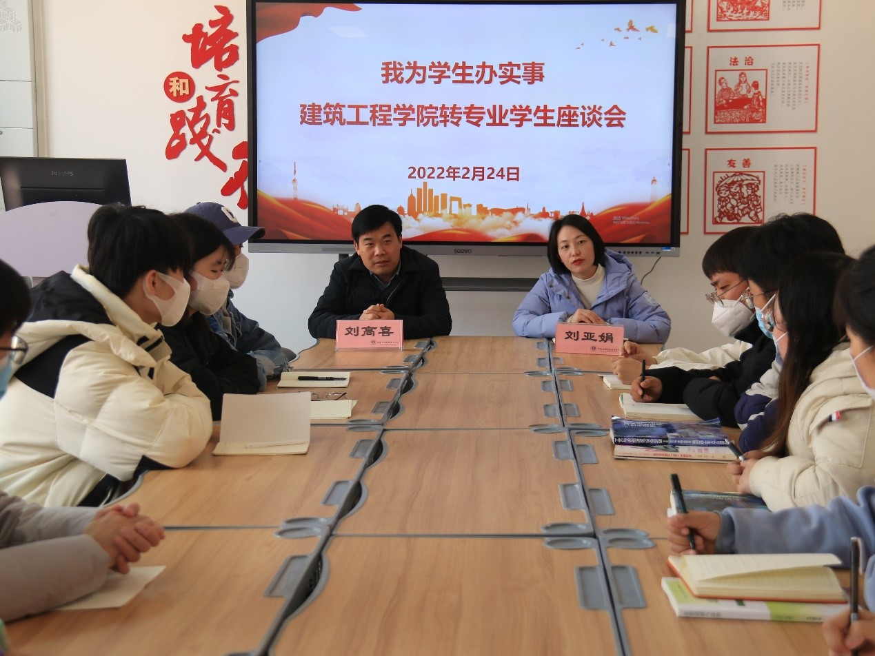 为了解2021级转专业同学进入公司后的学习生活情况,帮助员工解决实际困难,增强转专业员工对公司的认同感与归属感,提升员工凝聚力。2022年2月24日中午,太阳集团tyc539在办公楼516召开2021级转专业员工座谈会,学工办主任刘高喜,团总支书记刘亚娟,辅导员李慧杰及24名转专业员工参与会议。