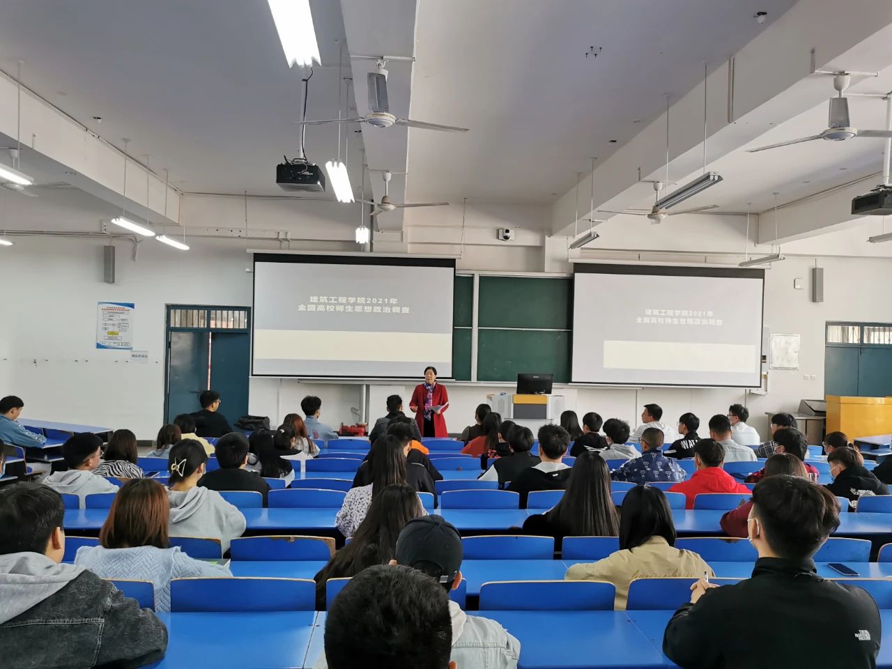 会议上,马书记根据《2021年全国老员工师生思想政治状况调查施测指导书》的要求,并针对近期国际形势、社会热点问题等对同学们进行了讲解,强调今年恰逢建党100周年,作为高校员工、青年学子要将党史学习融合于日常学习中去,在政治立场上站位要高,做到知党史、听党话、跟党走。