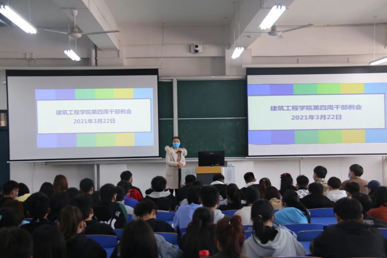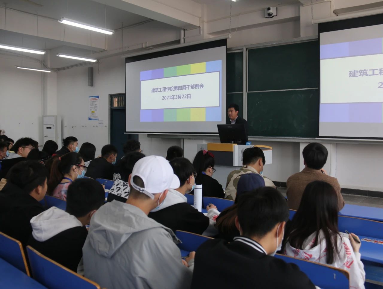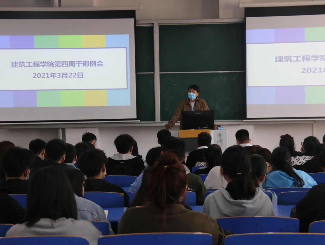 为提高小筑们的积极性,提升工作和学习的效率,太阳集团tyc539于2021年3月22日中午12:30,在B楼102教室召开了太阳集团tyc539第四周员工干部例会,(东校区以视频会议方式参加),参与本次会议的有刘高喜老师、李慧杰老师、孙雪理老师、团学会全体成员、入党积极分子及各班班长、团支书。会议开始,刘高喜老师强调,春季是流行病高发季节,大家要多参加校园活动,多锻炼,提高自身素质,宿舍要保持内务整洁,及时通风,预防传染性疾病发生。