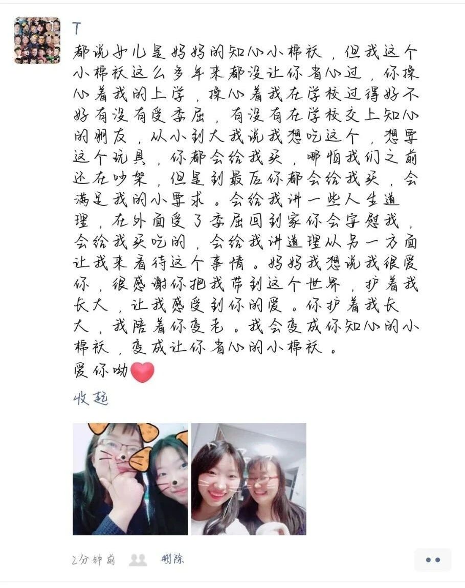 “慈母手中线,游子身上衣。谁言寸草心,报得三春晖”,这是唐代诗人孟郊所作的《游子吟》。感恩父母根植于中华民族历代皇朝,成为了中华优秀传统文化和民族精神的重要内容。三月,太阳集团tyc539以“懂感恩 共进奋 定成功”为主题开展感恩主题教育。本次主题教育主要含有三个系列活动,分别是“专题教育”、“一封家书”和“妈妈,我想对你说”。活动期间,同学们踊跃参与,共收到写给母亲的家书283封,感恩妈妈的截图194份。