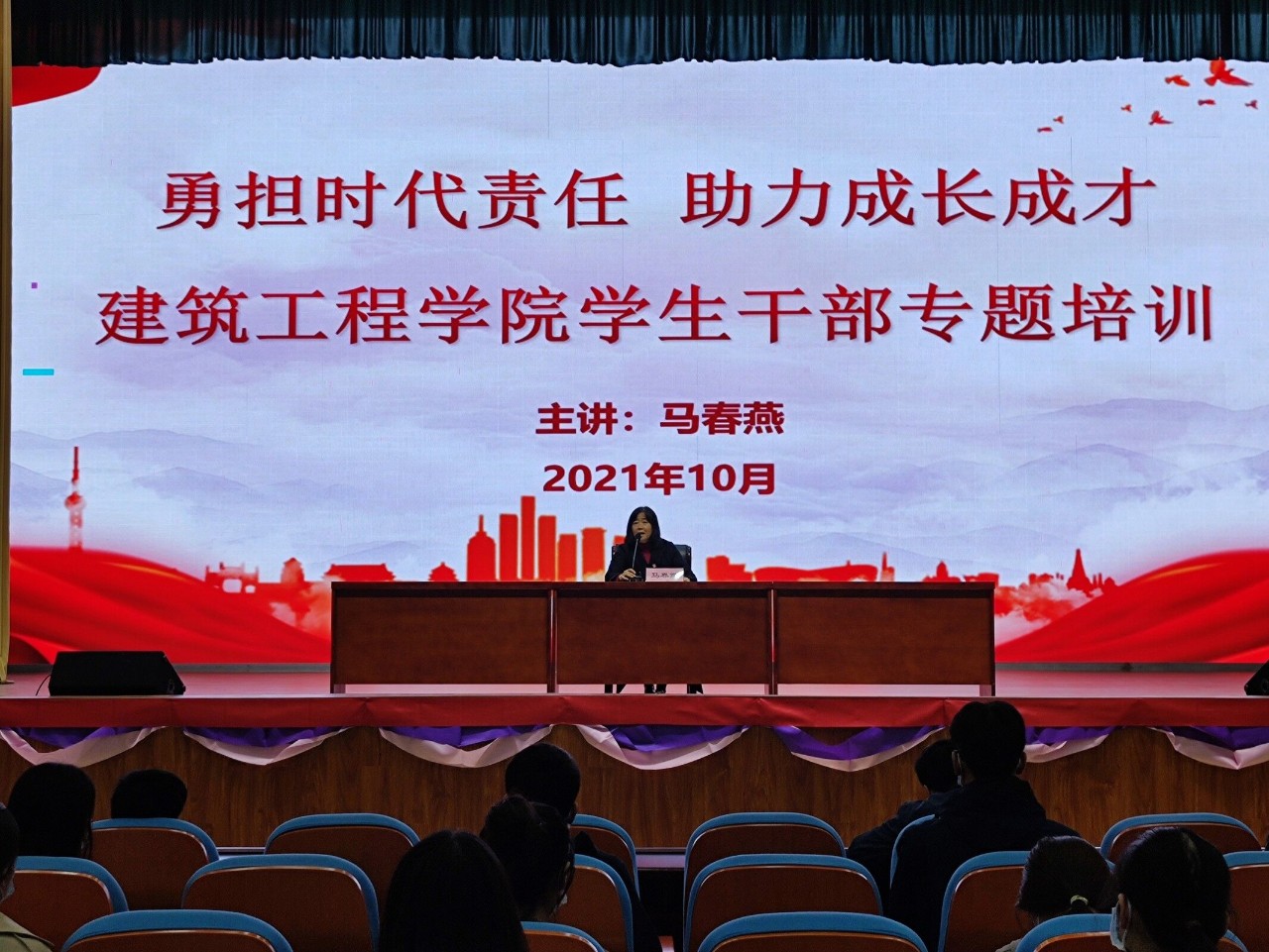 马春燕首先向大家分享优秀学长的经典案例,通过他们在学习中、生活中的优秀表现,引导大家养成良好的学习和生活习惯,充分利用大学时光锻炼充实自己,树立坚定的理想信念和高强的本领才干,同时要具有高度的责任感,配合老师完成各项工作,将工作做实做细。