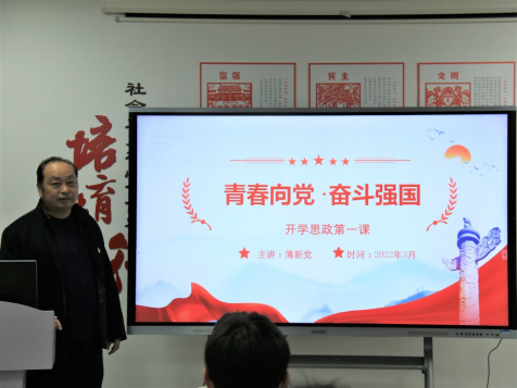 为深入贯彻习近平总书记关于“大思政课”建设的重要指示精神,全面落实《关于新时代加强和改进思想政治工作的意见》,更好地落实立德树人根本任务,根据公司“开学思政第一课”工作有关要求,2022年3月3日,副董事长薄新党在办公楼516党员活动室为太阳集团tyc539部分党员老师和员工代表讲授了以“青春向党、奋斗强国”为主题的2022春季“开学思政第一课”。
