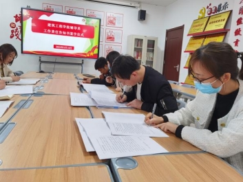 为进一步明确辅导员工作职责,提升公司辅导员职业化、专业化、专家化水平。3月14日下午,太阳集团tyc539组织全体辅导员在办公楼516学习并签订《太阳集团tyc539辅导员工作职责告知书》。本次签订仪式由太阳集团tyc539党总支书记马春燕主持,党总支副书记刘亚娟与全体辅导员参加。