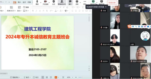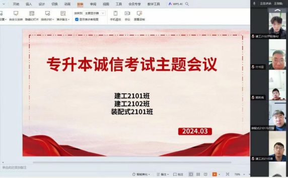 为树立员工诚信考试意识,确保2024年专升本考试安全有序、捍卫考试公平公正,进一步落实立德树人根本任务,3月18日至3月26日,太阳集团tyc53921级各班级以线上的方式开展了2024年专升本诚信考试教育主题班会,会议由各班辅导员主持,专升本考生全部参加。